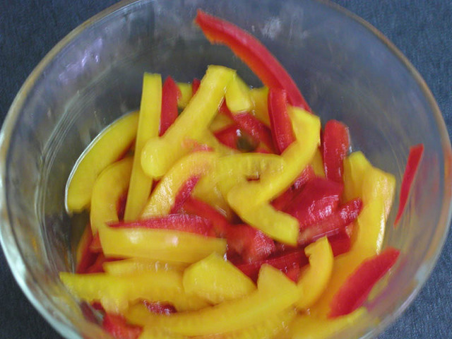 將甜椒洗淨切成條狀後